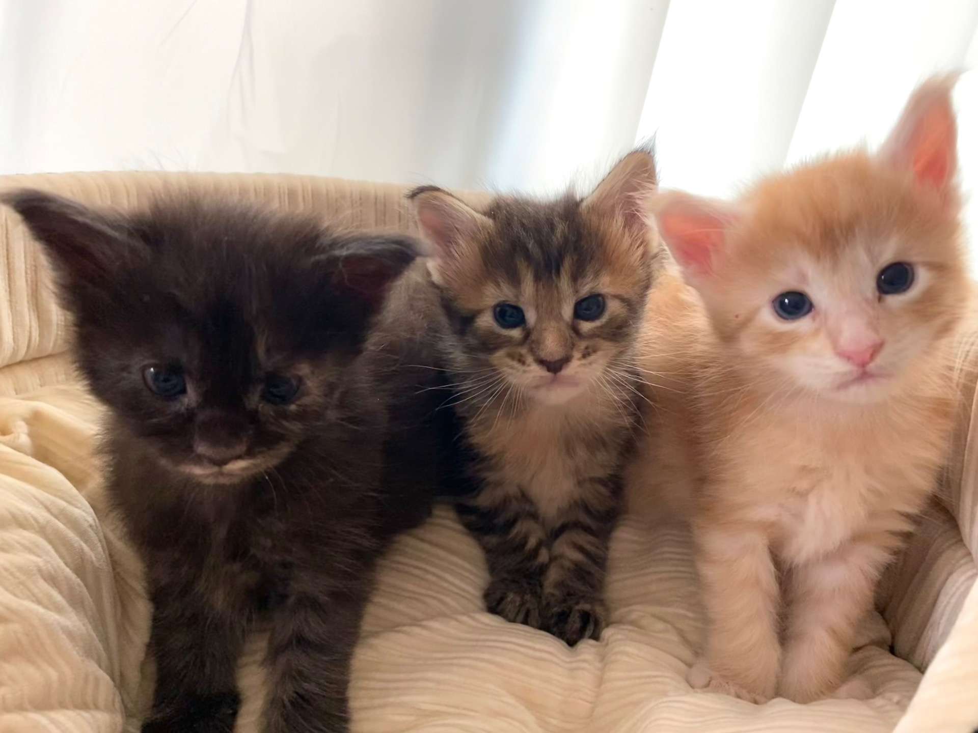 メインクーンこねこ 2025/11/23 こんにちは~♪ メインクーンこねこたちが 順調にスクスクと成長中です❣️ 10/29生まれ3匹 11/4生まれ3匹 11/6生まれ3匹 クリーム、ブルー、シルバー ブラウンの子たちがいます🐱 お問合せ受け付けておりますので メールにてご連絡お待ちしております!! ではでは👋